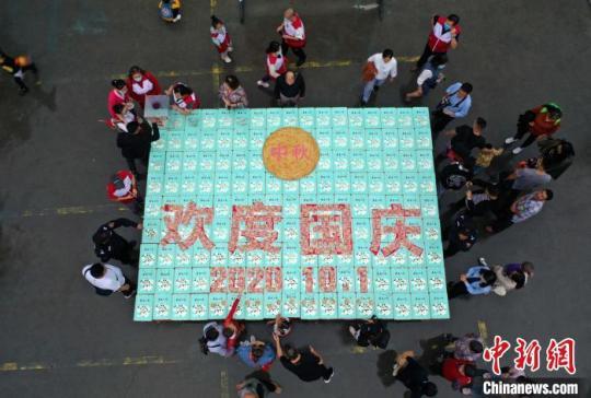 月餅擺成“歡度國慶”字樣。楊孝永 攝