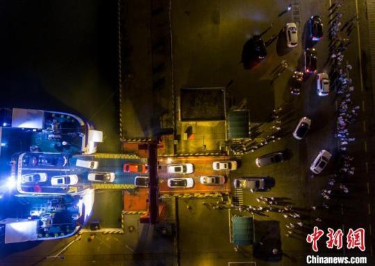 圖為海南??谛潞8鄞a頭,過海車輛排隊下船(航拍圖)。駱云飛 攝