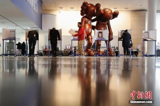 當(dāng)?shù)貢r間11月3日,美國紐約布魯克林博物館投票站,選民填寫選票。11月3日是2020年美國大選選舉日,全美選民前往投票站,為總統(tǒng)大選投票。 中新社記者 廖攀 攝