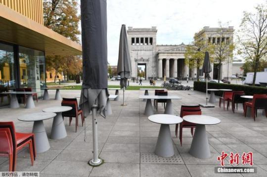 當(dāng)?shù)貢r間11月2日,德國慕尼黑,倫巴赫美術(shù)館附近人跡寥寥,一家餐廳關(guān)門停止?fàn)I業(yè)。