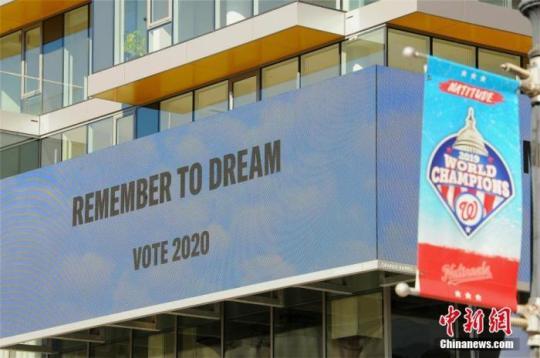 當(dāng)?shù)貢r(shí)間11月3日,美國(guó)迎來(lái)2020年大選投票日。圖為當(dāng)天首都華盛頓市區(qū)一處墻體屏幕打出呼吁民眾投票的字幕。 中新社記者 陳孟統(tǒng) 攝