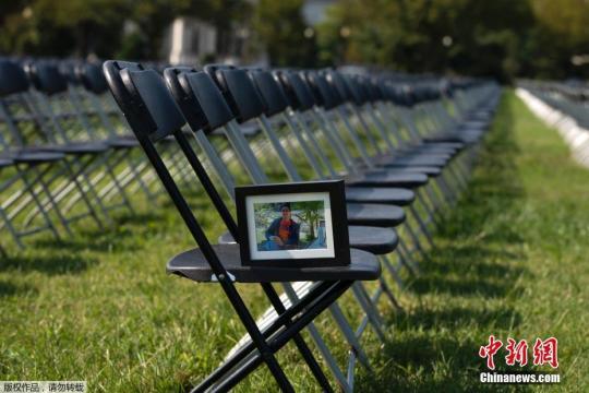 資料圖:當(dāng)?shù)貢r間10月4日,美國首都華盛頓,2萬把椅子擺放在白宮外南側(cè)草坪上,悼念美國超過20萬新冠逝者。