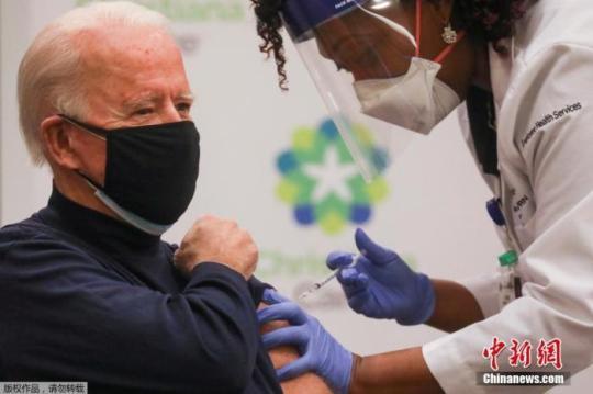 資料圖:2020年12月21日,美國當(dāng)選總統(tǒng)拜登在醫(yī)院公開接種了新冠疫苗。