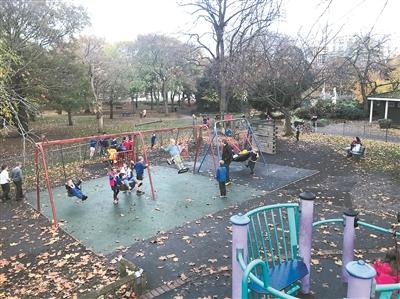 倫敦11月二級封鎖期間,小學生課后在附近的公園玩耍。