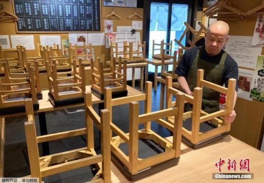 當(dāng)?shù)貢r(shí)間2021年1月8日,日本東京,一位餐廳老板正在收拾店內(nèi)的座椅,準(zhǔn)備關(guān)店。