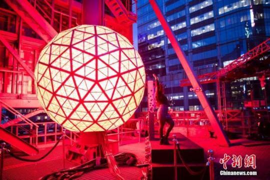 當?shù)貢r間12月30日,美國紐約時報廣場跨年夜倒計時水晶球測試亮燈,現(xiàn)場向部分人士開放預覽。 中新社記者 廖攀 攝