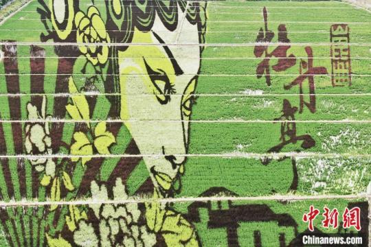 2020年8月,航拍江蘇昆山張浦鎮(zhèn)“牡丹亭”稻田藝術(shù)畫。中新社記者 泱波 攝