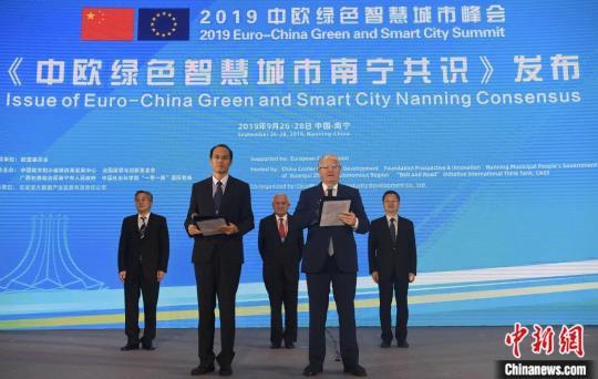 2019年9月,廣西南寧,2019中歐綠色智慧城市峰會(huì)發(fā)布《中歐綠色智慧城市南寧共識(shí)》。中新社記者 俞靖 攝