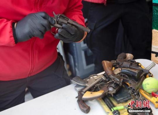 資料圖:美國警方整理回收的槍支。