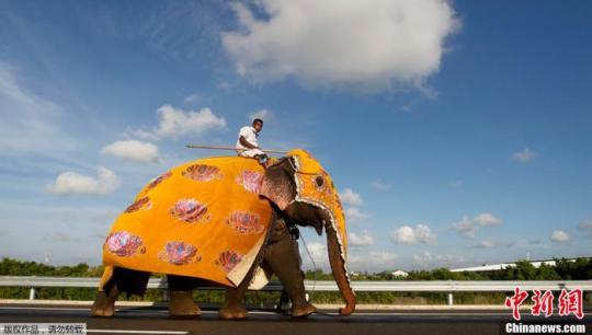 資料圖:斯里蘭卡民眾騎著大象,慶祝卡圖納耶克一條高速公路建成。