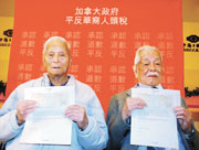 傳統(tǒng)部20日安排在華埠中僑互助會舉行對首批人頭稅付稅人的2萬元賠償發(fā)放儀式,99歲的關(guān)祥國及97歲的孫慶焜親自出席領(lǐng)取。