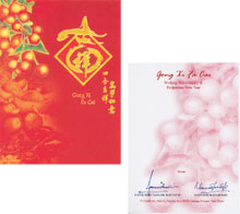 旅游部副部長兼馬華副總會長林祥才的“祥”賀卡,是以吉隆坡夜景、舞獅及第一方程式賽車場為主題,并配上“祥風(fēng)吹頌江水秀,才氣暢和滿山清”的吉祥語,而且這兩個詩句的第一個字及最后一個字,也分別代表了林祥才夫婦倆的名字,可見林祥才在設(shè)計賀卡上,費盡一番心思。