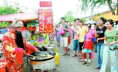 中國僑網(wǎng)消息:據(jù)馬來西亞《星洲日報(bào)》報(bào)道,人間“財(cái)神爺”趁著春節(jié)即將降臨,在馬來西亞人潮不斷的夜市擺檔炒蠔煎,一心要將丁亥年的財(cái)氣炒旺,把開心幸福的種子炒熟,散播給任何有緣人。