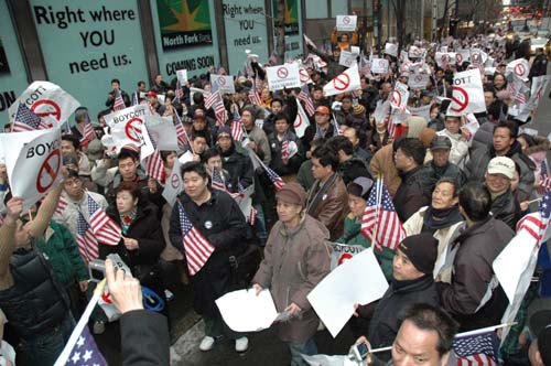 示威隊(duì)伍中,除了美東華人社團(tuán)聯(lián)合總會(huì)、美東餐館供應(yīng)商聯(lián)合商會(huì)、費(fèi)城華人餐館協(xié)會(huì)、客屬僑團(tuán)、粵籍僑團(tuán)、江浙滬僑團(tuán)、紐約閩籍社團(tuán)、賓州福建社團(tuán)、新澤西州福建社團(tuán)、全美朝鮮族同胞協(xié)會(huì)、婦女會(huì)、美國(guó)華人餐館聯(lián)盟等新僑團(tuán)前來(lái)外,中華公所、聯(lián)成公所等傳統(tǒng)僑團(tuán)也都派遣代表參加。