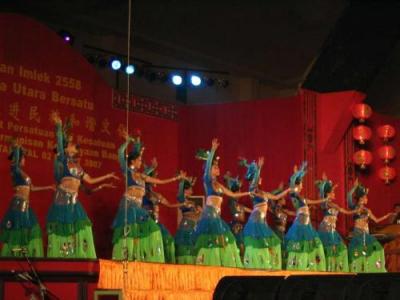 將近4000名華族和兄弟族群,省、市、縣各級首長及友好國家使節(jié)共同見證了蘇北統(tǒng)一慶祝春節(jié)籌委會精心策劃的文藝節(jié)目。節(jié)目真實地體現(xiàn)了晚會的主題,即“團結(jié)一致,促進民族和諧文化”。民禮鎮(zhèn)元寺龍獅團呈獻的醒獅與蘇北爪哇兒女聯(lián)誼會的神獅同臺表演,創(chuàng)造了一幕和諧融洽的“中華醒獅喜會爪哇神獅”的場面。