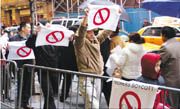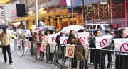 控告CW11電視臺(tái)抹黑報(bào)導(dǎo)的“新福建”外賣中餐館業(yè)者楊佑芳,其代表律師翁振信,美東華人社團(tuán)聯(lián)合總會(huì)執(zhí)行主席黃克鏘及鄭棋、鄭時(shí)甘等數(shù)十名僑領(lǐng)和華裔民眾,參加了歷時(shí)一個(gè)多小時(shí)的示威活動(dòng),但未與抗議對(duì)象和頒獎(jiǎng)單位對(duì)話。