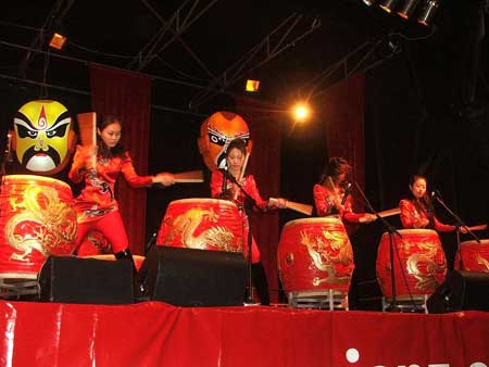 今年主表演舞臺上的節(jié)目非常精彩,是前兩年沒法比的。最引人注目的是來自北京的著名女子打擊樂團(tuán)“紅櫻束”,她們精彩絕倫的表演凝聚了燈節(jié)的人氣,成為今年元宵燈節(jié)的最大亮點(diǎn)。