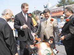 據(jù)北美世界日?qǐng)?bào)報(bào)道,華聯(lián)總會(huì)在其位于昆士市漢考克街665號(hào)的會(huì)址前舉行剪彩儀式,剪彩儀式之后,首先由費(fèi)蘭與崔愛(ài)民為兩只獅子“點(diǎn)睛”,接著由少林洪家武術(shù)醒獅隊(duì)表演采青與舞獅。