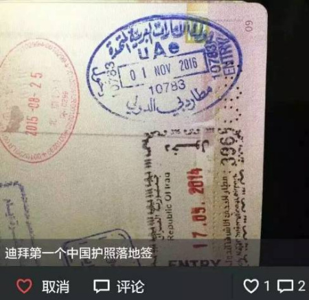 “自2016年11月1日起,中華人民共和國(guó)公民持普通護(hù)照入境阿聯(lián)酋無(wú)需預(yù)先申請(qǐng)簽證,入境不收取費(fèi)用,停留期30天。持照人可按阿相關(guān)規(guī)定繳費(fèi)延期一次,再停留30天。”