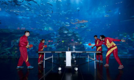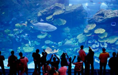 這塊水族館外觀墻寬32.88米,高8.3米,世界最大的水族館觀賞墻。