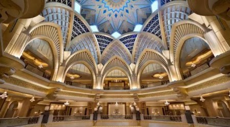 這座與阿聯(lián)酋總統(tǒng)府僅一街之隔的宮殿式飯店,擁有1300多米長(zhǎng)的黃金海岸線。整個(gè)酒店耗資30億美元,內(nèi)部面積達(dá)242820平方米。