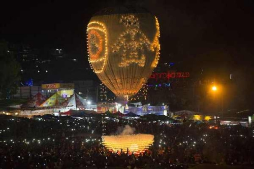 報道稱,民眾們在點燈節(jié)上放飛數(shù)以百計裝滿自制煙花的熱氣球,在升至適當高度前就點燃,撒下一束束花火。