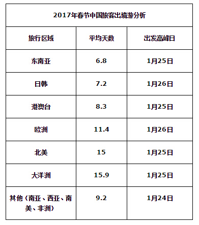 出行日期方面,除夕前兩天(1月25日、26日),將是國人春節(jié)出境游的去程高峰,這意味著,大部分中國旅客都將在境外度過農歷新年。