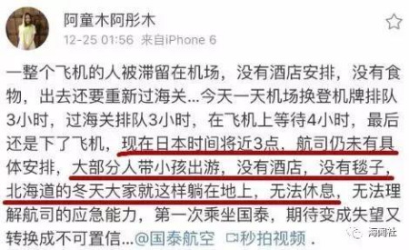 可以看出,滯留旅客所處環(huán)境非常惡劣,機(jī)場也盡可能提供了毛毯等,但食品、電源、暖氣等還是難以滿足所有人。尤其是兒童、身體欠佳的乘客,更是雪上霜。一連滯留幾日,人們的精神壓力也是前所未有的,憤怒、怨氣、不滿難以避免地顯現(xiàn)出來。