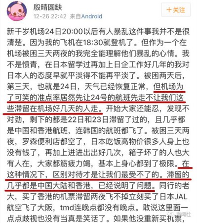 疑問三:中國旅客遲遲無法登機(jī),是因為受到了日本的歧視?