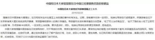 事實上,在2016年2月,中國駐日本大使館就以“中國駐日本大使館提醒在日中國公民謹(jǐn)慎購買高價保健品”為題,提醒大家。