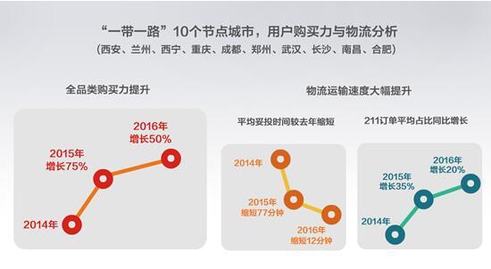 物流運輸速度大幅提升:2015平均妥投時間較去年縮短77分鐘,2016平均妥投時間較去年縮短12分鐘;2015年,211訂單平均占比同比增長35%;2016年,211訂單平均占比同比增長20%。