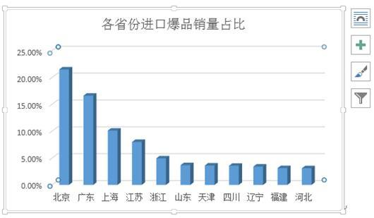 進口爆品銷往省份:進口爆品銷往中國大陸31個省份和地區(qū),其中北上廣、江浙、山東、天津、四川、遼寧、福建、河北購買的商品件數(shù)最多。