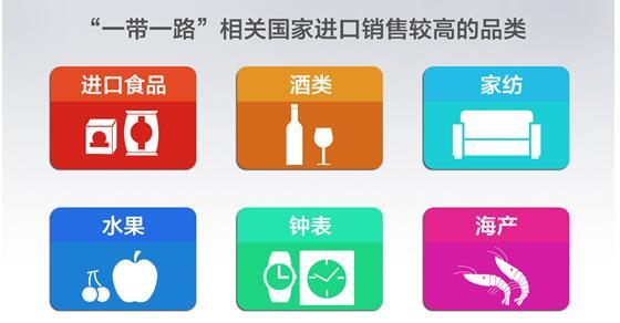 2、進口食品、酒類、家紡、水果、鐘表、海產(chǎn)是“一帶一路”相關國家進口,銷量最高的品類。
