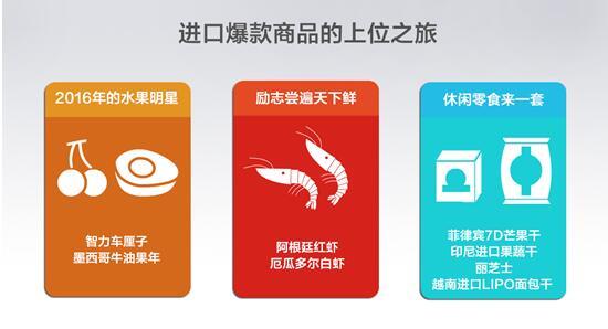 作為2016年的水果明星,智力車厘子、墨西哥牛油果在2016年走進了中國的千家萬戶。此外,阿根廷紅蝦、厄瓜多爾白蝦等進口海產(chǎn)也走上了百姓餐桌,特別是各種節(jié)日期間,銷量大幅上升。菲律賓7D芒果干、印尼進口果蔬干、麗芝士,越南進口LIPO面包干等食品也暢銷全國,成為城市消費者喜愛的休閑零食。