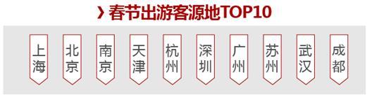 截至目前,上海、北京、南京、天津、杭州、深圳、廣州、蘇州、武漢、成都成為春節(jié)期間出游的十大客源地。與去年春節(jié)黃金周相比,客源地TOP10在排序上雖略有變化,但一二線城市消費(fèi)者依舊是春節(jié)出游主力軍。由于春節(jié)期間用戶旅游需求激增,有用戶甚至提前6個月便預(yù)訂了出游產(chǎn)品。目前,部分熱門產(chǎn)品已提前售空,人氣酒店也是一房難求。