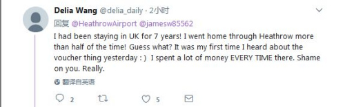 網(wǎng)友Delia Wang:我在英國生活了7年,回家的飛機(jī)多半是從希斯羅出發(fā)的!猜猜我要說什么?我昨天才第一次聽說,呵呵。我在免稅店花了很多錢!每次!真的!真為你們感到羞恥!