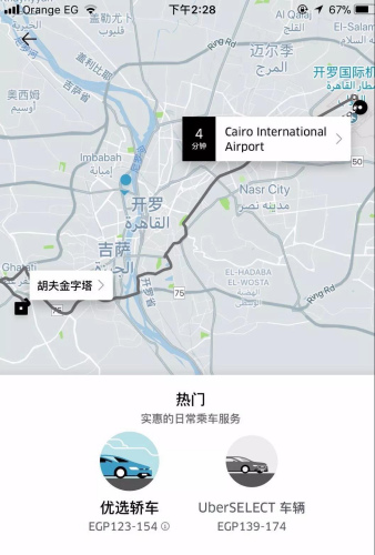 埃及比較通行的打車軟件有兩個:Uber和Careem。由于埃及油價較低,打車費用低于國內,例如從開羅機場打車到著名的胡夫金字塔,路程約50公里,打車需要1個多小時,根據(jù)Uber打車軟件估計,需150多埃磅,僅相當于60元人民幣左右。