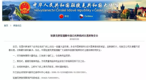 使館還就此發(fā)布安全提醒,讓廣大同胞乘坐飛機(jī)時注意保管自己的財物。