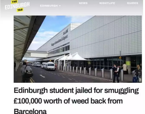 前不久,一名英國留學(xué)生因在乘機(jī)時攜帶價值10萬英鎊的大麻,在蘇格蘭被判入獄。