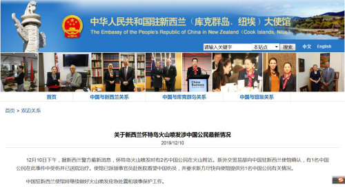 中國(guó)駐新西蘭使館將繼續(xù)做好火山噴發(fā)應(yīng)急處置和領(lǐng)事保護(hù)工作。