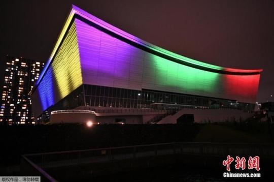 當(dāng)?shù)貢r(shí)間2020年7月23日,日本東京,東京奧運(yùn)會倒計(jì)時(shí)一周年,東京奧運(yùn)會比賽場館有明競技場亮起奧運(yùn)五環(huán)色燈光。