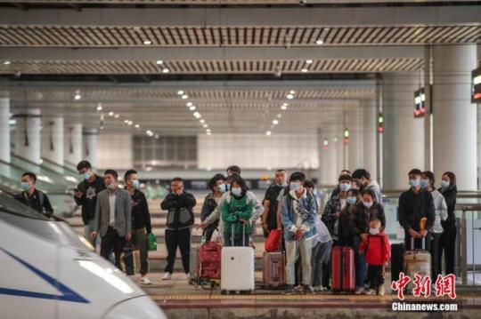9月30日,旅客在貴陽(yáng)北站站臺(tái)候車(chē)。當(dāng)日是國(guó)慶中秋假期前一天,全國(guó)鐵路迎來(lái)出行客流高峰。 中新社記者 瞿宏倫 攝