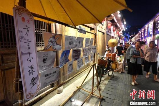 圖為方言展示板吸引游客。中新網(wǎng)記者 呂明 攝