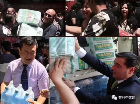 結(jié)束交接儀式后,物資裝車時,大使李寶榮與市長費利佩·亞歷山德里,領(lǐng)事部主任于洋,華助中心主任王何興,圣地亞哥市區(qū)域發(fā)展部主任吉列爾莫·索托及眾愛心僑胞們都成為搬運工,將物資手把手裝上卡車。在大災(zāi)大難面前,他們心懷大愛無尊卑當(dāng)搬運工,使現(xiàn)場所有人都震撼與感動。