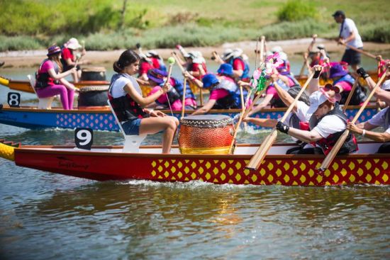 入夏的雅昆河碧水倒映著藍(lán)天白云,格外美麗,300米長的賽道兩岸聚集了近千名觀眾。上午9點(diǎn)起,編為混合組、婦女組和青少年組三個(gè)組別的22支龍舟隨著振奮的鼓點(diǎn)劃破水面,從丹尼爾賽艇中心港口向比賽起點(diǎn)進(jìn)發(fā)。他們當(dāng)中,有來自北方加利利湖的基布茲(集體農(nóng)場)龍舟隊(duì),魏茲曼科學(xué)院博士龍舟隊(duì),丹尼爾俱樂部少年龍舟隊(duì),“熊貓迷”龍舟隊(duì)等常規(guī)隊(duì)伍,也有特拉維夫盲人協(xié)會(huì)的龍舟隊(duì),以色列醫(yī)療康復(fù)龍舟隊(duì)等特殊的龍舟隊(duì)。曾帶領(lǐng)以色列賽艇隊(duì)參加北京2008年奧運(yùn)會(huì)和殘奧會(huì)的以色列賽艇聯(lián)合會(huì)主席埃特恩高舉發(fā)令槍,正式揭開了龍舟競渡的戰(zhàn)幕。