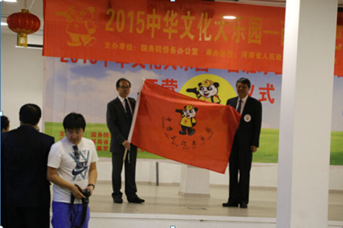 隨后,郝利軍副主任將中華文化大樂園營旗授予麻卓民董事長并互贈(zèng)紀(jì)念品。