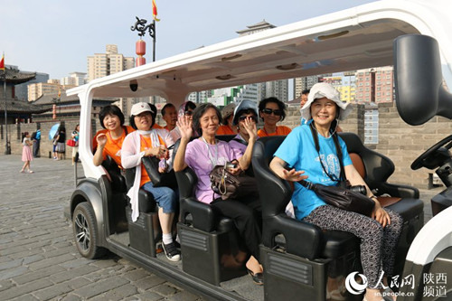 游覽西安古城墻。(王孟陽(yáng) 攝)
