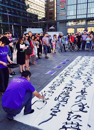 活動(dòng)中,孔子學(xué)院學(xué)生紛紛拿出看家本領(lǐng),寫大字,畫國畫。許多觀眾表示,這是他們第一次觀看中國書畫作品的創(chuàng)作,和他們傳統(tǒng)印象中的藝術(shù)形式迥然不同,他們感到十分新奇。許多民眾紛紛拿起毛筆,親自嘗試和體驗(yàn)這來自中國的古老藝術(shù),并表示非常有興趣來學(xué)習(xí)這門藝術(shù)。