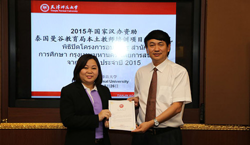 此次研修團(tuán)的課程由曼松德孔子學(xué)院與天津師范大學(xué)共同商定,包括漢語本體知識、教學(xué)法、教學(xué)技能和HSK考試等課程,還有書法、剪紙、太極拳、京劇等文化方面的內(nèi)容。學(xué)習(xí)之余,天津師范大學(xué)還安排教師們參觀了北京故宮、長城等名勝古跡,以及天津古文化街和楊柳青鎮(zhèn),讓大家零距離接觸和體會中國文化。研修期間,曼谷市教育局局長李召龍(Mr. Jaroon Meerhanataworn)等高級教學(xué)督導(dǎo)組成的曼谷市教育局高訪團(tuán)也來到天津師范大學(xué),他們對本土教師的培訓(xùn)情況進(jìn)行了解并參加了結(jié)業(yè)典禮。