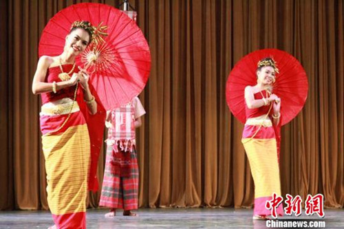 據(jù)悉,中泰于1975年7月1日正式建交。1976年泰國(guó)民族舞蹈演出團(tuán)到中國(guó)交流訪問時(shí)首創(chuàng)舞蹈《泰中友誼舞》。19日晚,柯叻府皇家大學(xué)的演出團(tuán)再次表演這組融合了中泰兩國(guó)藝術(shù)的經(jīng)典舞蹈。(曾潔)